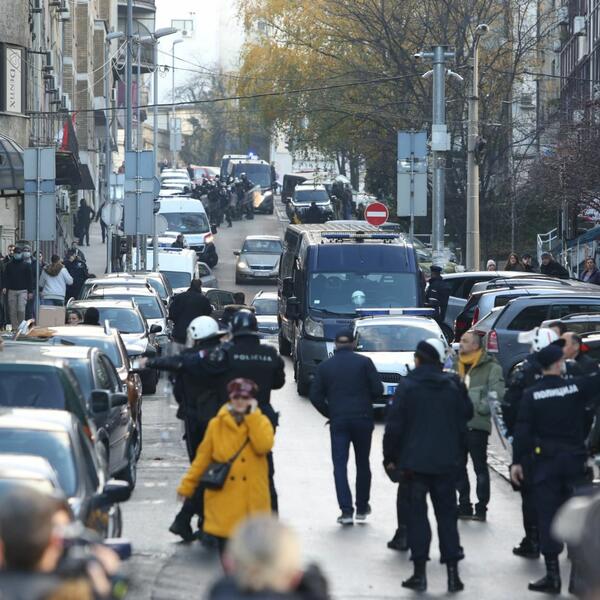 Primetne su velike policijske snage u svim delovima grada, a kako javlja reporter "Blica", u Savskoj ulici došlo je do guranja između policije i prisutnih građana i aktivista.