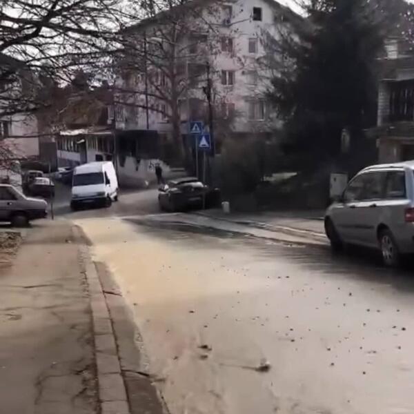 Naime, nadomak jedne kuće, šikljao je mlaz vode, poput gejzira. Voda žute boje se potom sliva dalje niz ulicu, praveći rečicu.