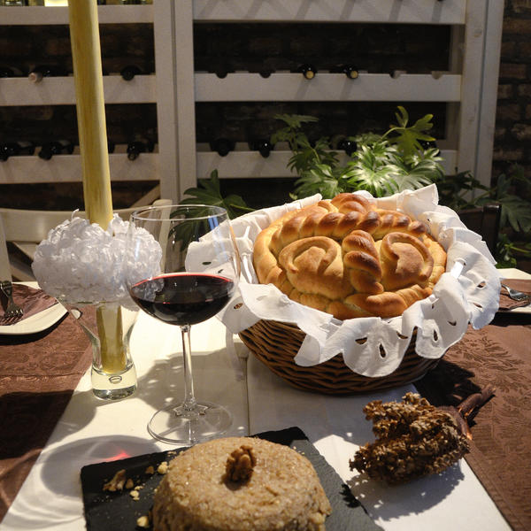Kada se gosti okupe oko stola, pre nego što sednu, domaćin ritualno, pozdravlja sveca zaštitnika, zatim se svi okreću krstu i sveći na istoku.
