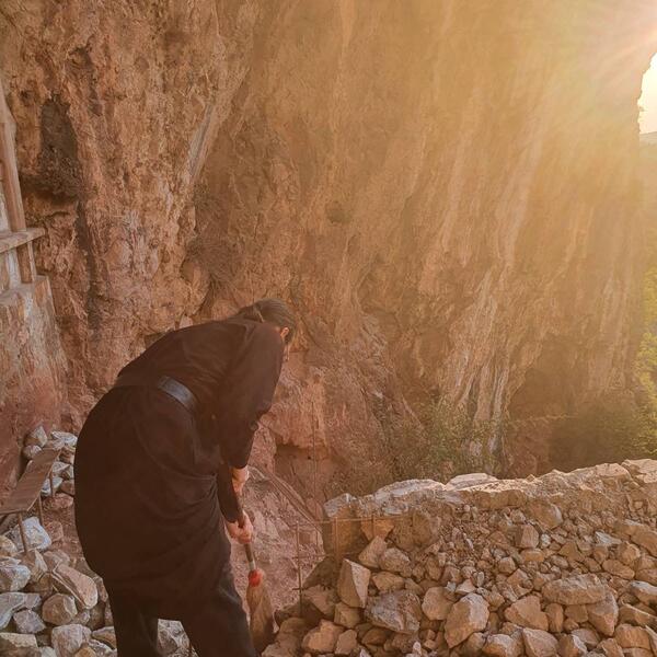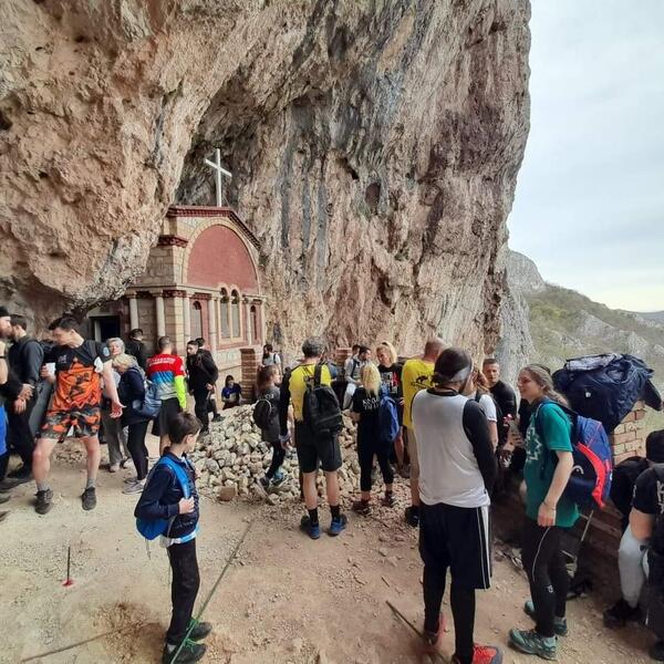 "Drugi deo staze je stenovit i tuda se može popeti samo uz pomoć sajli. Na leđima sju dobrovoljci iznosili sav materijal od cementa, vode, peska i sve do preko 3000 cigli. Do sada je urađen potporni zid i proširen je plato za sve one koji žele da posete ovu svetinju, postavljena nova ograda", rekao je Branko.