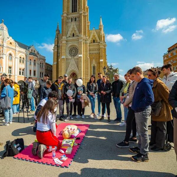 “Svako od nas može da se nađe u situaciji da može da pomogne nekom od ugroženih, tačnije, svakome od nas može da se desi srčani zastoj tako da je jako potrebno da svako od građana i građanki u Novom Sadu zna kako se izvodi pravilno kardiopulmonalna reanimacija, jer počinjemo od te činjenice da je prosečno vreme izlaska Hitne medicinske pomoći na teren oko 9 minuta. Za tih 9 minuta laik ili prosečan građanin može da uradi mnogo, tako što će započeti kardiopulmonalnu reanimaciju i tako što će pozvati Hitnu pomoć. Tako da je to nekako i naš osnovni cilj da mi ustvari obučimo građane kako da uspeju za to vreme da pomognu ugroženom.”