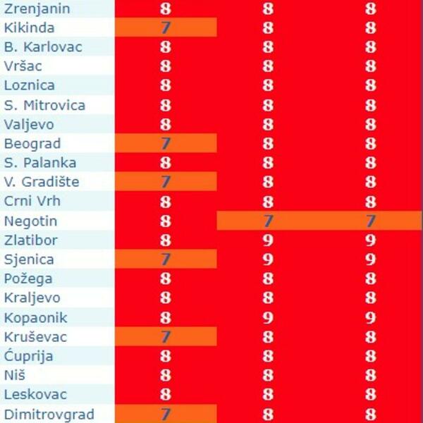 Kada je reč o UV indeksu, u većem delu Srbije označen je kao opasna pojava i obojen u crveno. Najpovoljnije je u Peći, odnosno Prizrenu.