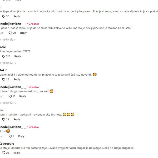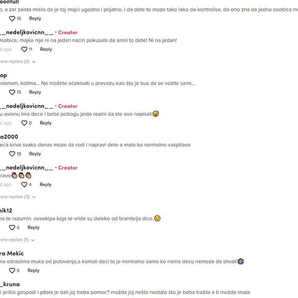 "Gospođo idite privatnim vozilom a ne autobusom. Možete samo misliti kako je roditeljima bilo teško i koliko je njih tek smaralo", jedan je od komentara na koji je autorka videa odgovorila - To je njihovo dete i ako ne umeju da ga vaspitaju nije mi žao sto njih smara. Današnji roditelji su previše razmazili svoju decu čast izuzecima.