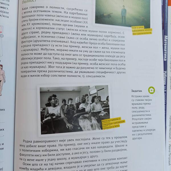 U nekoliko udžbenika koji se koriste u osnovnim školama u Srbiji pojavila se lekcija o polnom i rodnom identitetu