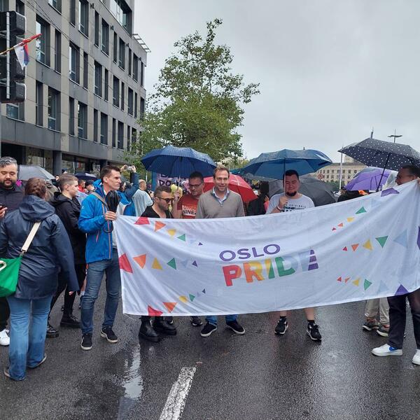 Atmosfera u Beogradu u se uprkos kiši i lošem vremenu zahuktava, a oko 16 časova ispred Ustavnog suda je razvijena zastava duginih boja.