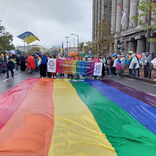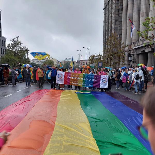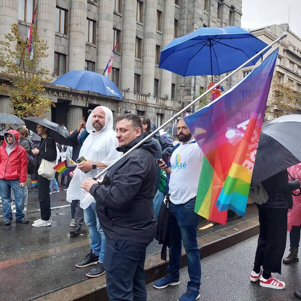 Protivnici Parade ponosa, nekoliko stotina mahom mladih ljudi oko tridesetak godina okupili su se oko Hrama Svetog Sava i krenuli su u šetnju ka Pravnom fakultetu, ali su zaustavljeni u Beogradskoj ulici od strane policije, kako ne bi došli u kontakt sa učesnicima Prajda.