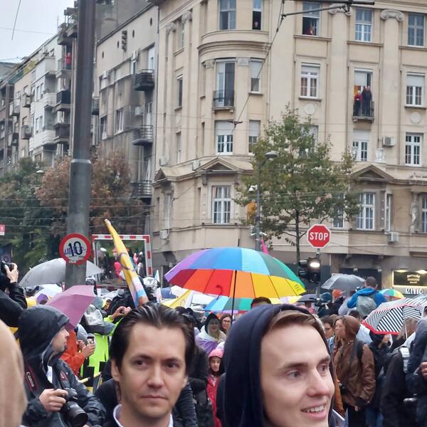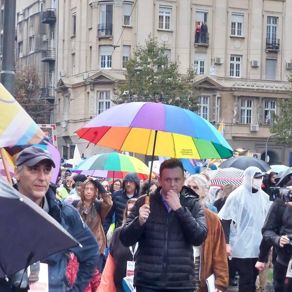 Organizacioni odbor Gej parade je odlučio da put kojim parada treba da se kreće obeleži Zastavom duginih boja. Zbog toga je bilo potrebno da zastava ima paran broj traka (tri bi došle sa jedne, a 3 sa druge strane) i rešeno je da se izostavi tirkizna.