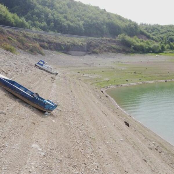 Loša hidrološka situacija izazvana velikim sušama uticala je na to da se vodostaj jezera u toku letnjih meseci znatno smanji, a do sumornih prizora i guma koje se naziru sa dna došlo je zbog remonta na B mašini hidroelektrane Potpeć.