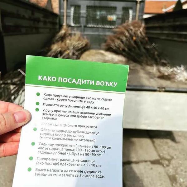 Zato je počela podela 36 000 sadnica jabuke i šljive za dvorišta u Sremskoj Mitrovici. Mitrovčane će posetiti aktivisti mesne zajednice na čijoj teritoriji žive, a ukoliko ih ne zateknu kod kuće, građani će moći da preuzmi sadnicu šljive i jabuke u svojoj mesnoj zajednici.
