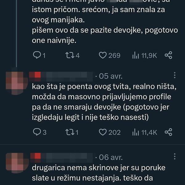 Naime, ovi muškaci koji se predstavljaju kao student i mentor na Bogosloviji, navodno su, prema rečima devojaka, prevaranti koji šalju poruke čudne i neprijatne sadržine.