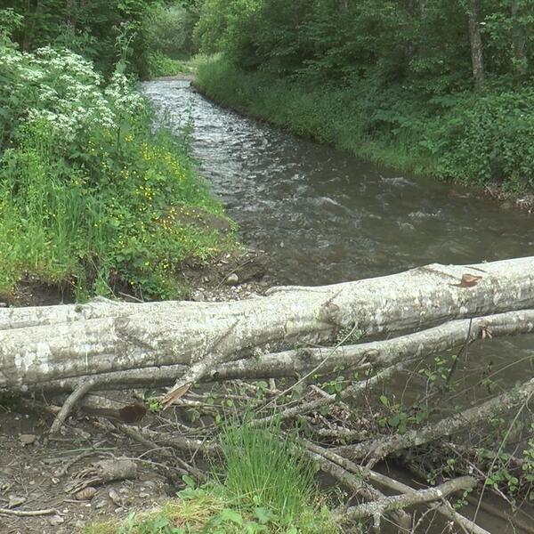 VODA ODNELA MOST U IVANJIČKOM SELU: Meštani nabujalu reku mogu preći samo preko postavljenih trupaca (FOTO)