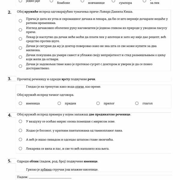 Ovo su neki primeri testova sa probnog prijemnog: