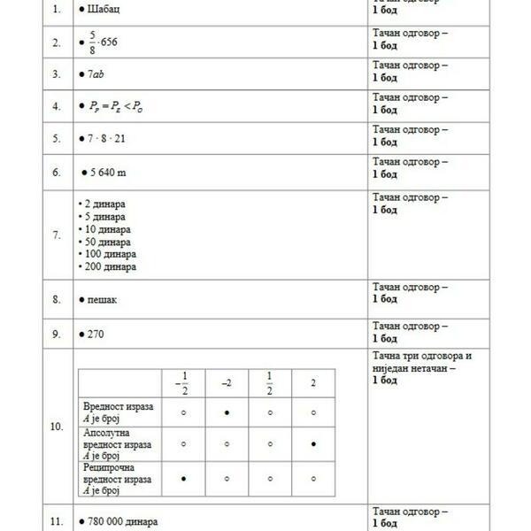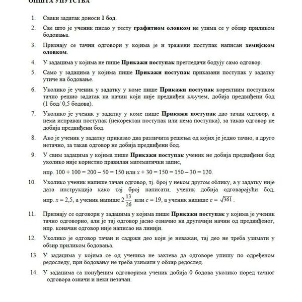 U nastavku možete pogledati rešenja zadataka iz matematike koju su danas polagali osmaci.
