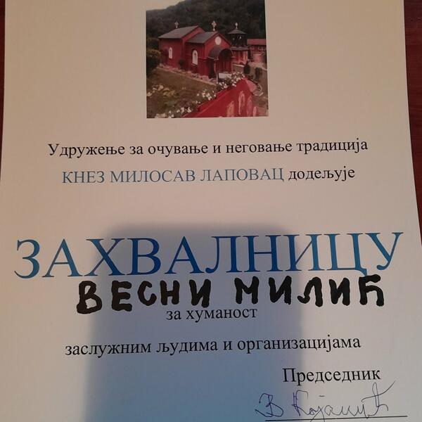 "Trenutno sam nezaposlena osoba i vodim se na evidenciji Nacionalne službe za zapošljavanje. Trenutno sakupljam potrebna dokumenta kako bih mogla da se prijavim za novčanu socijalnu pomoć. Imam dugove za struju i prete da će mi je iseći. Što se tiče mog radnog angažmana, nažalost on još uvek nije regulisan i nemam stalni posao. Kada radim, radim isključivo kao zamena drugim nastavnicima u školama. Život nije fer, da ja posle osvojene 22 nagrade završim na ulici", izjada se Vesna.