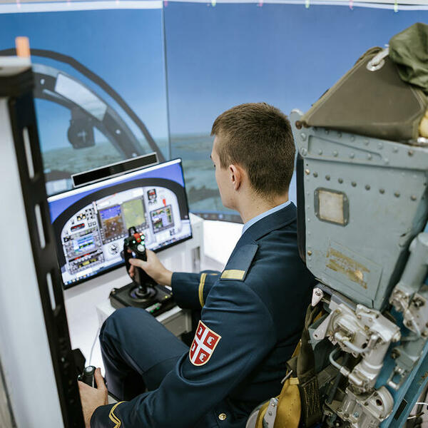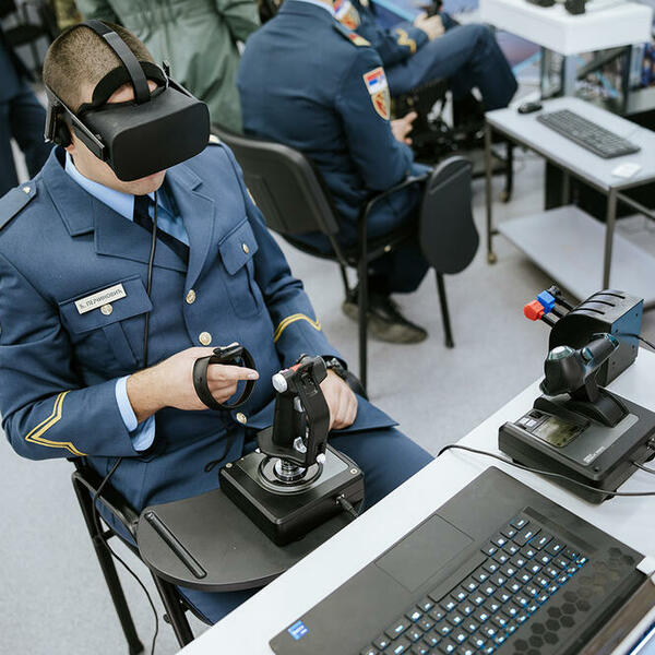 Sjajan let. Virtuelan, naravno. S naočarima za virtuelnu realnost. Ovo jedinstveno iskustvo doživela sam upravo na Vojnoj akademiji. Kabinet, zapravo laboratorija za simulacije i virtuelnu realnost. Ovde se kadeti, budući piloti, uče da "rukuju" avionima i helikopterima pre nego što krenu u realnu, letačku obuku na nebu.