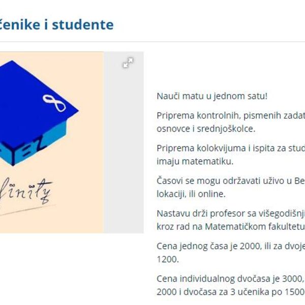 Oglasa ima dosta, ali mnogi profesori ne navode cenu svojih usluga, pa ih za više informacija morate kontaktirati.