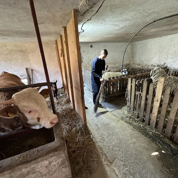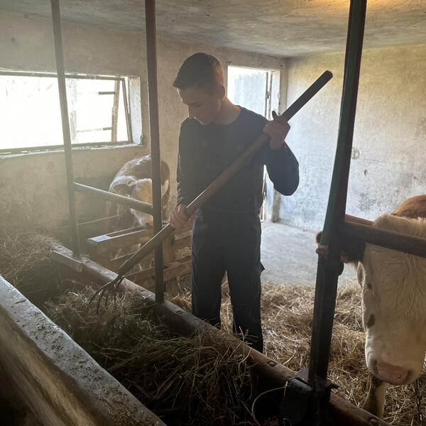 Na Zoranovoj farmi iako uzgaja krupnu stoku zna se red, disciplina je svuda, a njemu, kako kaže ništa ne pada teško, jer kada je sve pod konac stiže i u školu na vreme.