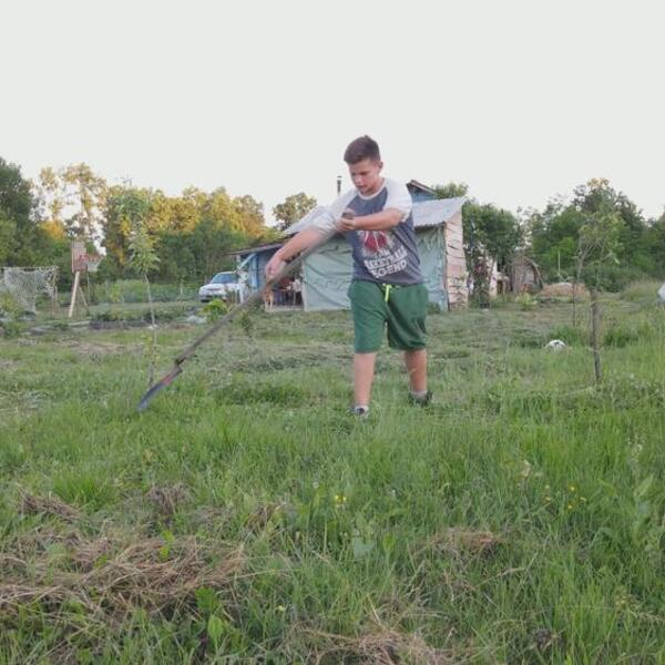 - Majka mi je živa, ali ona je u Smederevskoj Palanci, ostavila je šestoro dece i mene - kaže Radoje dok pridržava oštru kosu na drvenoj držali, skoro višu od njega samog.