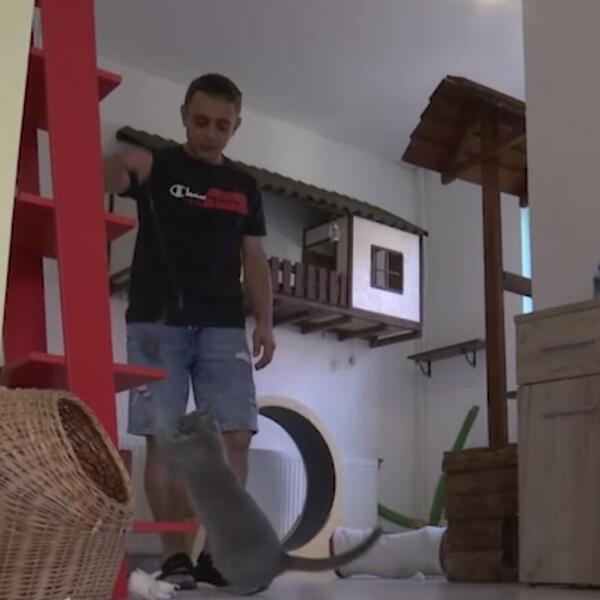 Dragiša Radulović otvorio je hotel za mačke kada je shvatio da nema kome da ostavi svoju ljubimicu. Sada na 350 kvadratnih metara ima 30 apartmana, tri terase i zajednički prostor za igru.