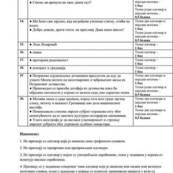 OVO SU REŠENJA TESTA IZ SRPSKOG/MATERNJEG JEZIKA: Proverite odgovore sa prvog dana male mature (FOTO)