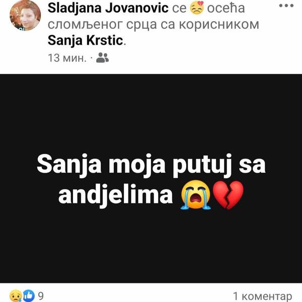 Tužna vest objavljena je na Sanjinom Fejsbuk profilu