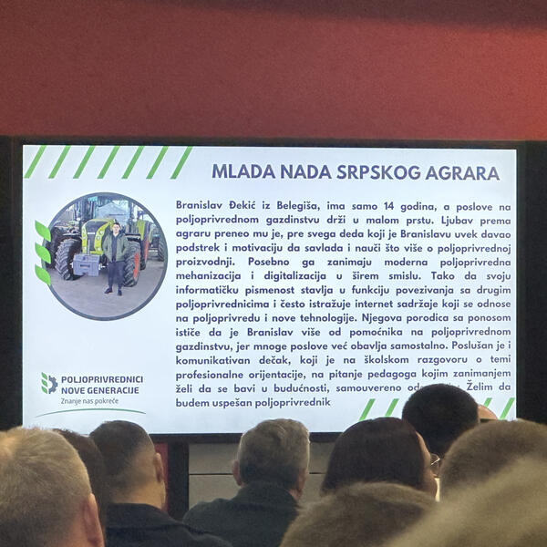 - Naše udruženje sa ponosom već četvrtu godinu zaredom dodeljuje nagrade za najbolje mlade poljoprivrednike iz Srbije. Naš cilj je da umrežimo mlade ljude da shvate da imaju prijatelja i partnera bez obzira u kom delu Srbije žive. Da uspostavimo mrežu mladih poljoprirednika kako bi svi dali svoj zajednički doprinos sektoru agrara, jer je poljoprivreda jedna od najvažnijih oblasti, rekao je Goran Eror iz udruženja Poljoprivrednici nove generacije.