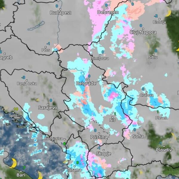 - Do kraja dana oblačno, tmurno i hladno, ponegde i maglovito, mestimično sa kišom, a u brdsko-planinskim predelima i sa susnežicom i snegom. Uveče i noću susnežica i slab sneg ponegde se očekuju i u nižim predelima. Najviša temperatura u većini mesta od nula do četiri stepena Celzijusovih, a na jugu i istoku Srbije do devet stepena Celzijusovih - navode iz RHMZ.