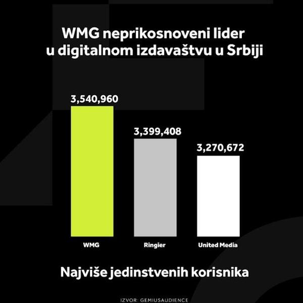WMG je digitalna medijska kompanija broj 1 u Srbiji i po broju jedinstvenih korisnika.