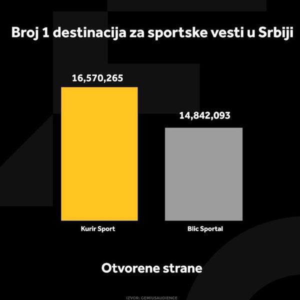 Prema podacima „Gemiusa“, Kurir Sport se izdvaja kao ključni izvor za sve ljubitelje sporta u Srbiji. Ovaj portal pruža najnovije informacije o sportskim događajima i prepoznat je kao ključna destinacija za sve koji žele kvalitetne izveštaje i stručne članke o aktuelnim temama iz sveta sporta. Sa 16,5 miliona otvorenih stranica u februaru, Kurir Sport beleži čak 11,6% više u odnosu na drugoplasirani portal, što potvrđuje njegovu dominaciju i relevantnost kada su u pitanju vesti iz sporta.