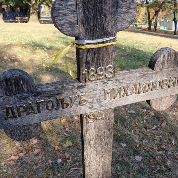 Na Adi Ciganliji, blizu samog ulaza, odmah pored pešačke i biciklističke staze, nedaleko od mesta gde se iznajmljuju roleri i dvotočkaši, ugledali smo krst koji su poštovaoci Čiča Draže i postavili iznad svojevrsnog groba.