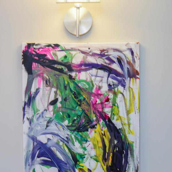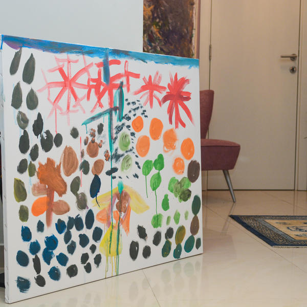 Vera ne slika samo četkicom, već i rukama i nogama, a u stanju je da slika bez prekida po ceo dan - kaže Ljiljana dok pokazuje platno, drvo, medijapan, staklo, papire, platna, tanjire na kojima njena ćerka slika.