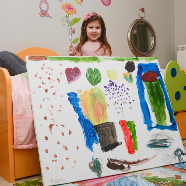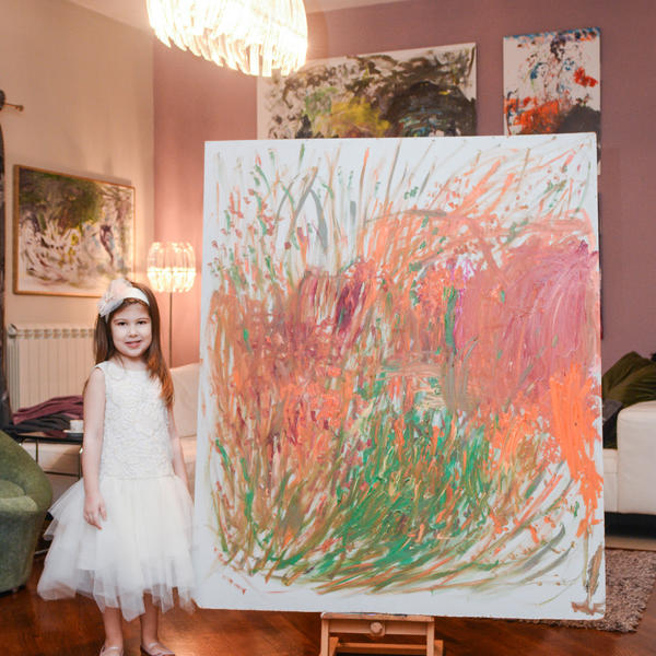 Vera Jovančević (4) devojčica je iz Mirijeva koja je počela da slika uljem na platnu maltene kao beba.