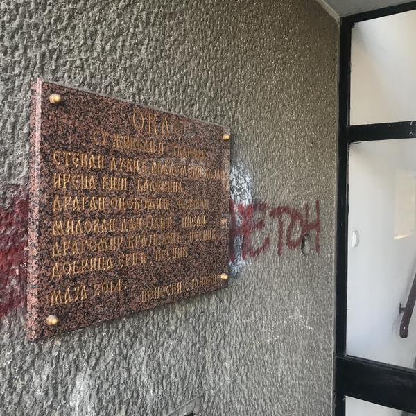 Na samom ulazu zapazili smo mermernu tablu sa imenima poznatih pisaca, glumaca, vajara, koji su ponosni stanari o svom trošku okačili i na taj način odali počast umetnicima koji su tu živeli i stvarali. Među imenima nalazi se i ime čuvenog pesnika Dobrice Erića.