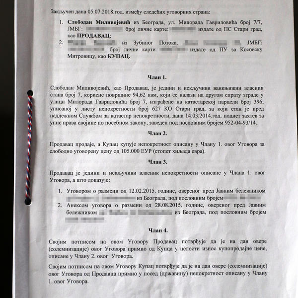 - Sve je počelo od jednog poznanika, koji je znao nekog drugog poznanika, a koji je opet poznavao proverenu osobu koja želi da moj stan kupi. Gospođa iz Zubinog Potoka i ja smo stupili u kontakt, i sve što se tiče ugovora smo završili, nakon čega se njoj gubi svaki trag. Poslao sam joj i opomenu pred utuženje s pozivom za plaćanje ili ću da raskinem kupoprodajni ugovor. Da ne pominjem to da smo svi slabi na osobe sa Kosova, i da uvek gledamo da im pomognemo, a evo, sad su one mene nasamarile, rekao je za naš portal Slobodan Milivojević.