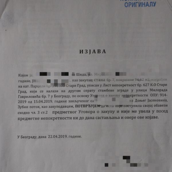 Gospođa sa Kosova, za koju nas je Slobodan zamolio da ostane anonimna, je svoju igru ovde tek bila započela. Ona nakon što je nestala, a za stan koji nije platila, sa trećim licem iz Šida sklapa ugovor o zakupu za Slobodanov stan u iznosu od 100 evra.