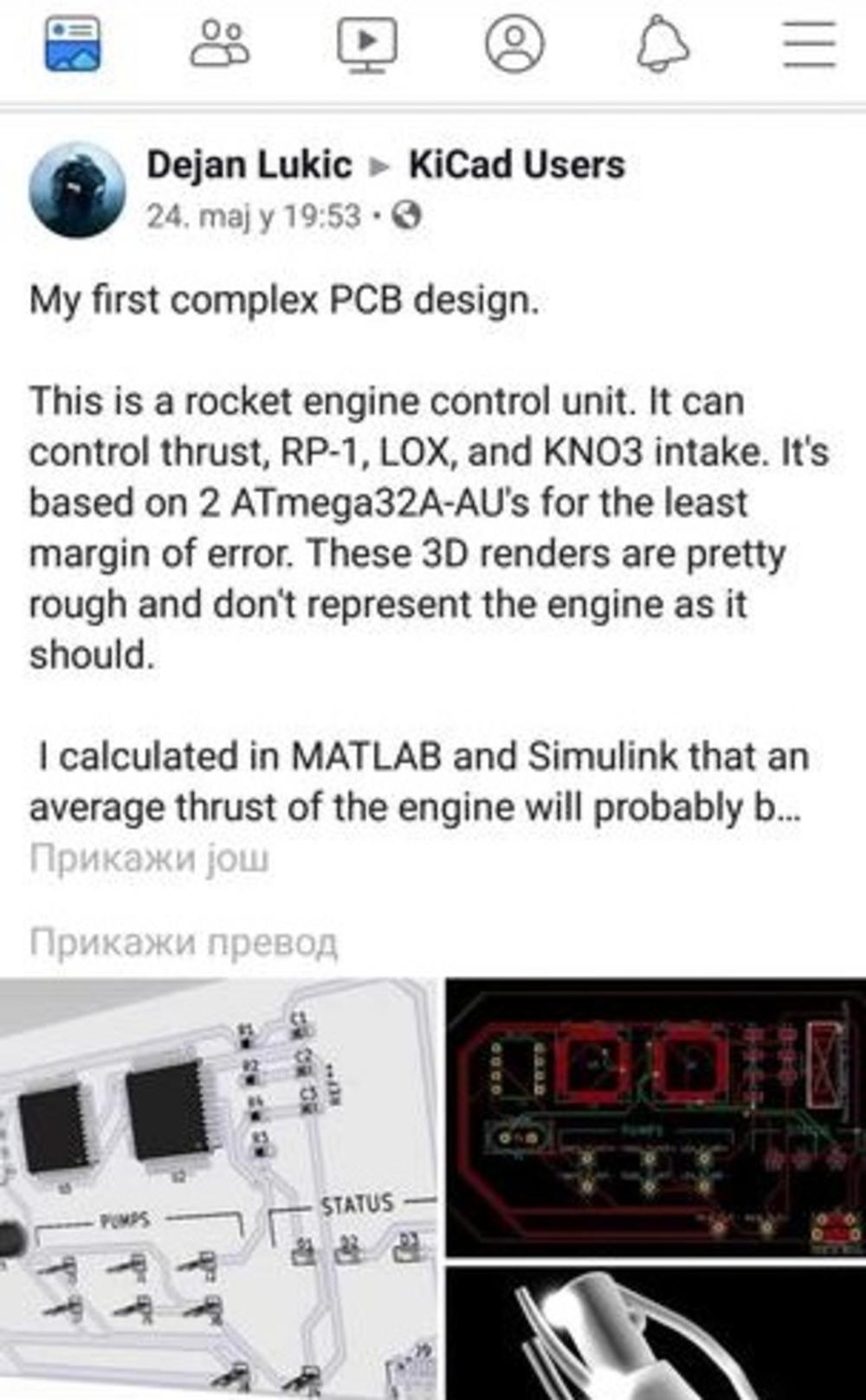 - Ima potisak od 5,4 tone i nije štetan po prirodu, jer glavno gorivo je voda. Takođe, pravio sam i "autopilot" sistem za motorna vozila, on omogućava autonomnu vožnju, izbegavanje prepreka i napredni GPS i NANS sistem. Na ideju sam došao tako što sam 2016. godine čuo "CubeSat" satelite, odnosno satelite veličine 10x10x10cm, i javila mi se ideja da ga i ja napravim - priča "dečak genije" za Espreso.