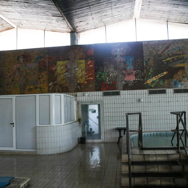 U jednoj od sala u sklopu bolnice nalaze se dva bazena (zatvorena), okružena zidnim mozajicima, impresivnih po svojoj veličini, lepoti i umetničkoj vrednosti. Oni su delo akademika prof. Srbinovića.