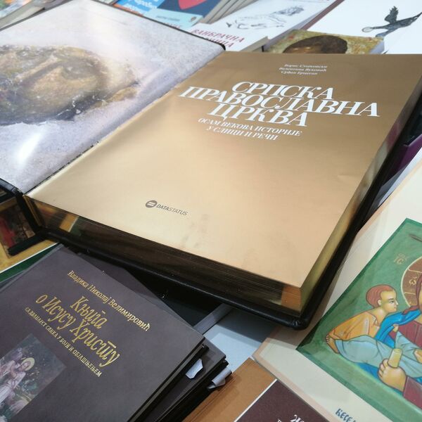 Knjiga pod nazivom: "Srpska pravoslavna crkva - osam vekova istorije u slici i reči", koja košta 38.400 dinara je najskuplja knjiga koja se ove godine izlaže na štandovima.