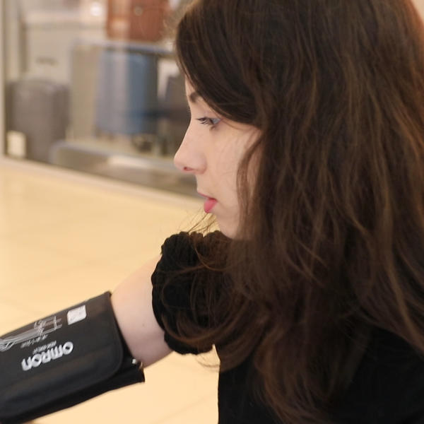 Najpre su mi lekarke izmerile krvni pritisak posmatrajući parametre na aparatu. 113/63, kažu idealno! Onda sam prešla na drugu stolicu, kratak ubod, prislanjanje na aparat i za kratko vreme izlazi broj 5. Takođe, odličan rezultat.