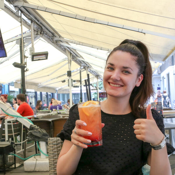 Prvo smo želeli da se malo razbudimo i dođemo sebi te smo svratili do obližnjeg kafića na hladan bezalkoholni koktel. Uglavnom su svi objekti klimatizovani, a ukoliko odlučite da želite da sedite napolju, obavezno neka bude u hladu i neposredno do nekog rashladnog uređaja. Vrućina se na taj način podnosi lakše, a još ako ste u dobrom društvu, zaboravićete i na sve brige i na toplotu. Mi smo imali sreće te je i usluga bila na nivou, a konobar je, uprkos napornom radu bio raspoložen za priču te je ugođaj bio potpun.