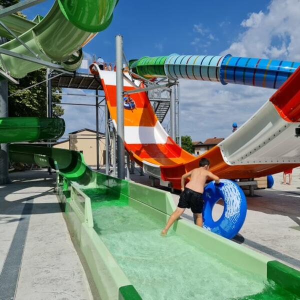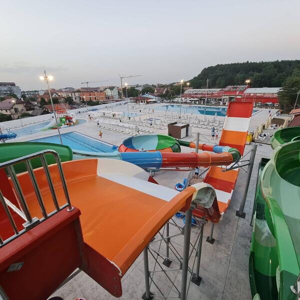 Verujte mi na reč (mada ćete videti i sami na fotografijama) ovo je pravi mali raj, kako za decu, tako i za odrasle. 3 bazena sa raznoraznim atrakcijama prosto mami da odmah skinete garderobu i prepustite se čarima Akva parka. Tu su ekstremniji tobogani za sve one odrasle koji su još uvek deca u duši, kao i tobogani koji su namenjeni najmlađima. Tu su naravno i površine za sunčanje, tuševi, kabine za presvlačenje, kafići, restorani, pa verujem da ćete sa lakoćom moći da provedete ceo dan na jednom mestu.