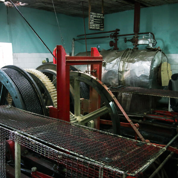 - Parna mašina je 1920. godine dopremljena u Senjski rudnik. Pre toga je na njenom mestu bilo drveno izvozno okno, a sada je metalno. Sastoji se iz dva dela, jedan je na površini, a drugi na 150 metara dubine i oni se naizmenično spuštaju i podižu. U lift staje 5 radnika ili neki lakši repromaterijal koji se iznosi iz jame. Rudari rade u tri smene, a jedna smena traje osam sati. Na početku svake smene daje se signal rukovaocu mašine na koji način da vozi u zavisnosti od toga šta se prevozi, ljudi ili materijal. Ugalj koji se iskopava u jami ne izvozi se ovde više, već se šalje u Resavicu gde se vrši prečišćavanje - dodaje kustoskinja.