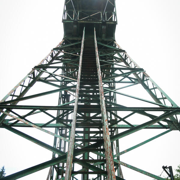 Izvozni toranj je još jedan od industrijskih simbola Senjskog Rudnika, a rudari se ponose time što se na posao prevoze jedinstvenom na svetu parnom mašinom.