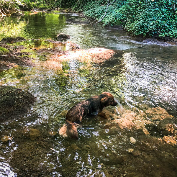 Vidi se da baš zna da uživa. U blizini vodopada se nalaze dva restorana iz kojih verovatno dobija mnogo hrane. U srcu Srbije i u raju na zemlji, pa da li jednom psu život može biti lepši?
