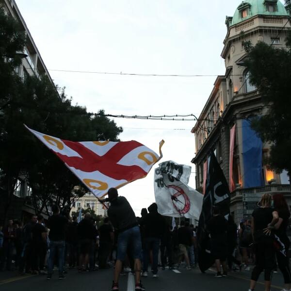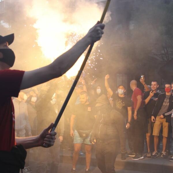 Danas se u samom centru Beograda okupila nekolicina ljudi koja protestuje protiv mera za suzbijanje koronavirusa.