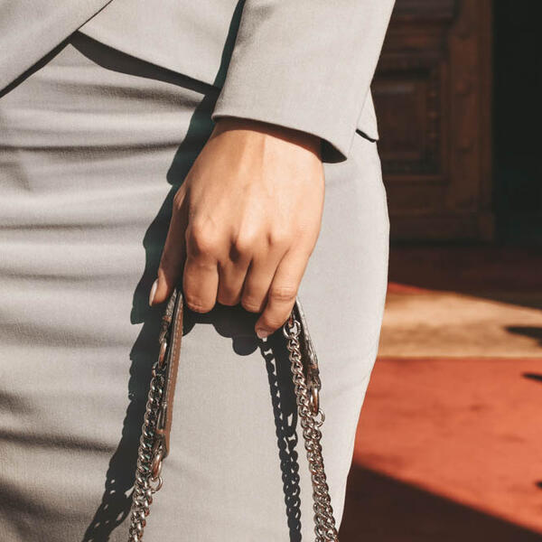 Dubravka je uvek tip-top sređena, a ovog puta obukla je sivu haljinu, prilagođenu prilici. Posebno su nam "zapali za oko" dugmići na haljini, koji su imali poseban odsjaj na suncu. Kako bi upotpunila izgled obula je krem cipele i torbu uklopila sa njima.