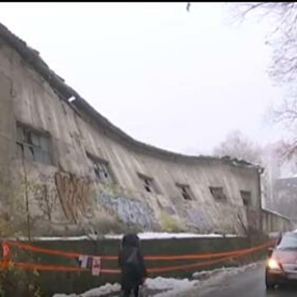 Sada vam donosimo neverovatnu sliku. Primamljivih 30 ari placa u Ulici Marije Bursać, stoji iza zida, koji simbolično deli sudbinu ove bivše fabrike noževa. Deo zgrade opasno je nakrivljen i čini se da će se svakoga trena obrušiti.