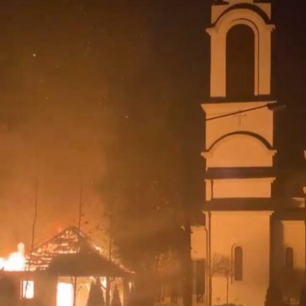 U dvorištu hrama Svete Trojice na Letnjikovcu sinoć je došlo do požara na objektu crkvene prodavnice.
