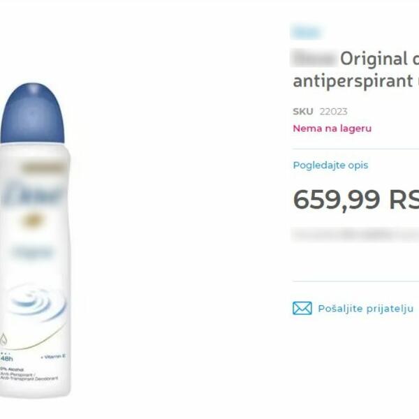 Sporni dezodorans smo i sami pronašli u marketu i cena mu je zaista 637,99 dinara, a pojedini koštaju i više. Isti takav dezodoras u drogerijama košta 519,99 dinara, a na pijaci svega 299 dinara.