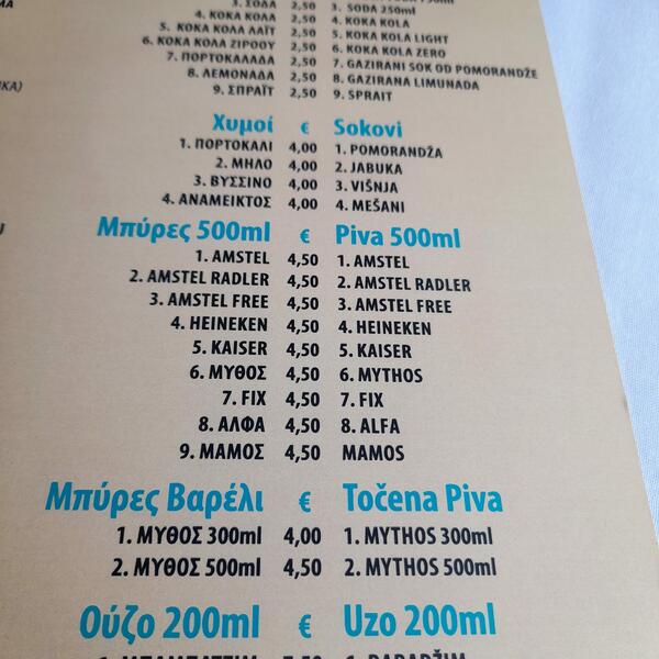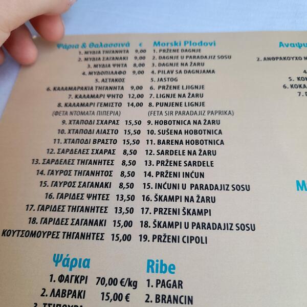 Ovde se riblji specijaliteti kreću u proseku od 8 do čak 70 evra, piva oko 4 ipo evra, a sokovi 4 evra.